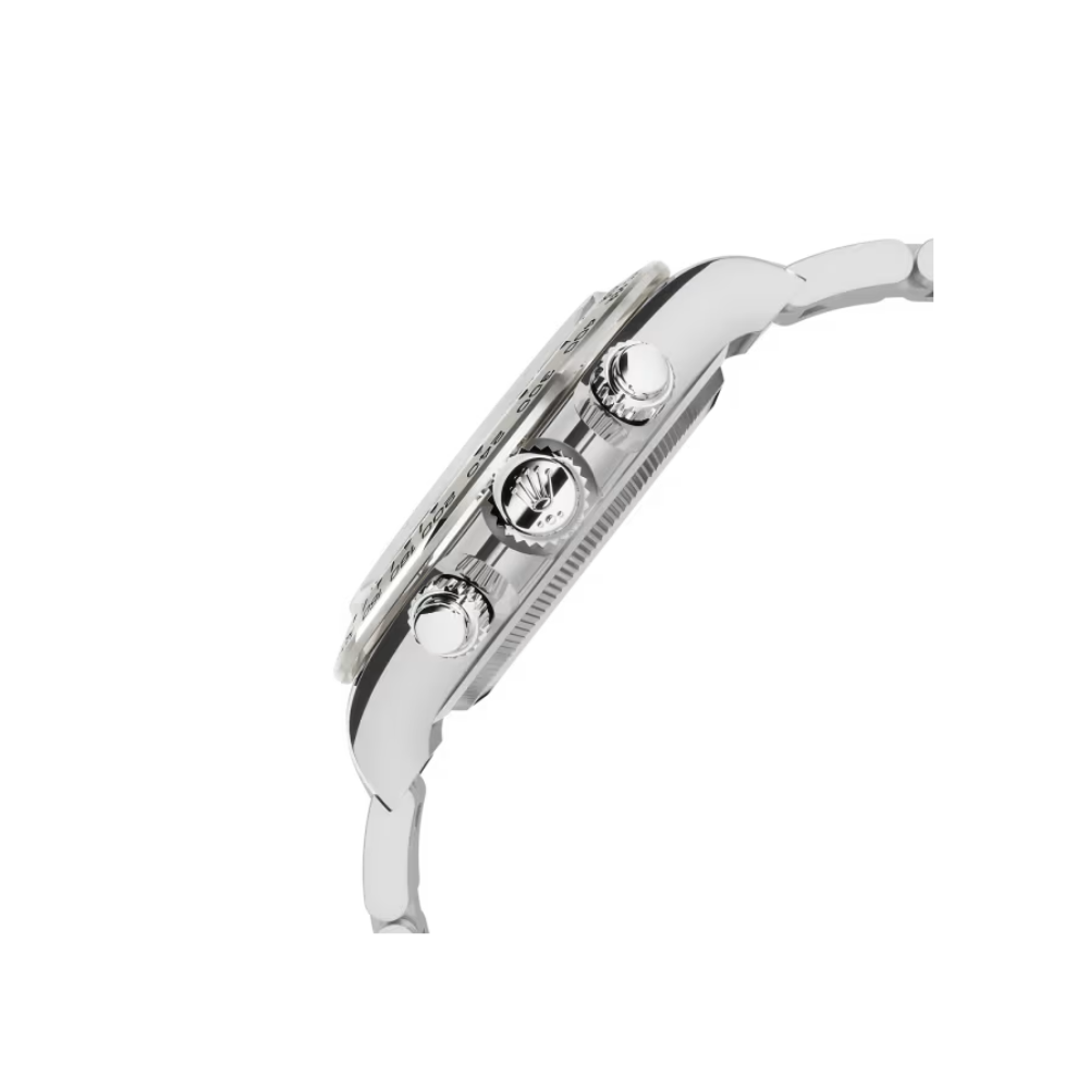 40 mm case crafted entirely from 18k white gold, polished for a refined finish.