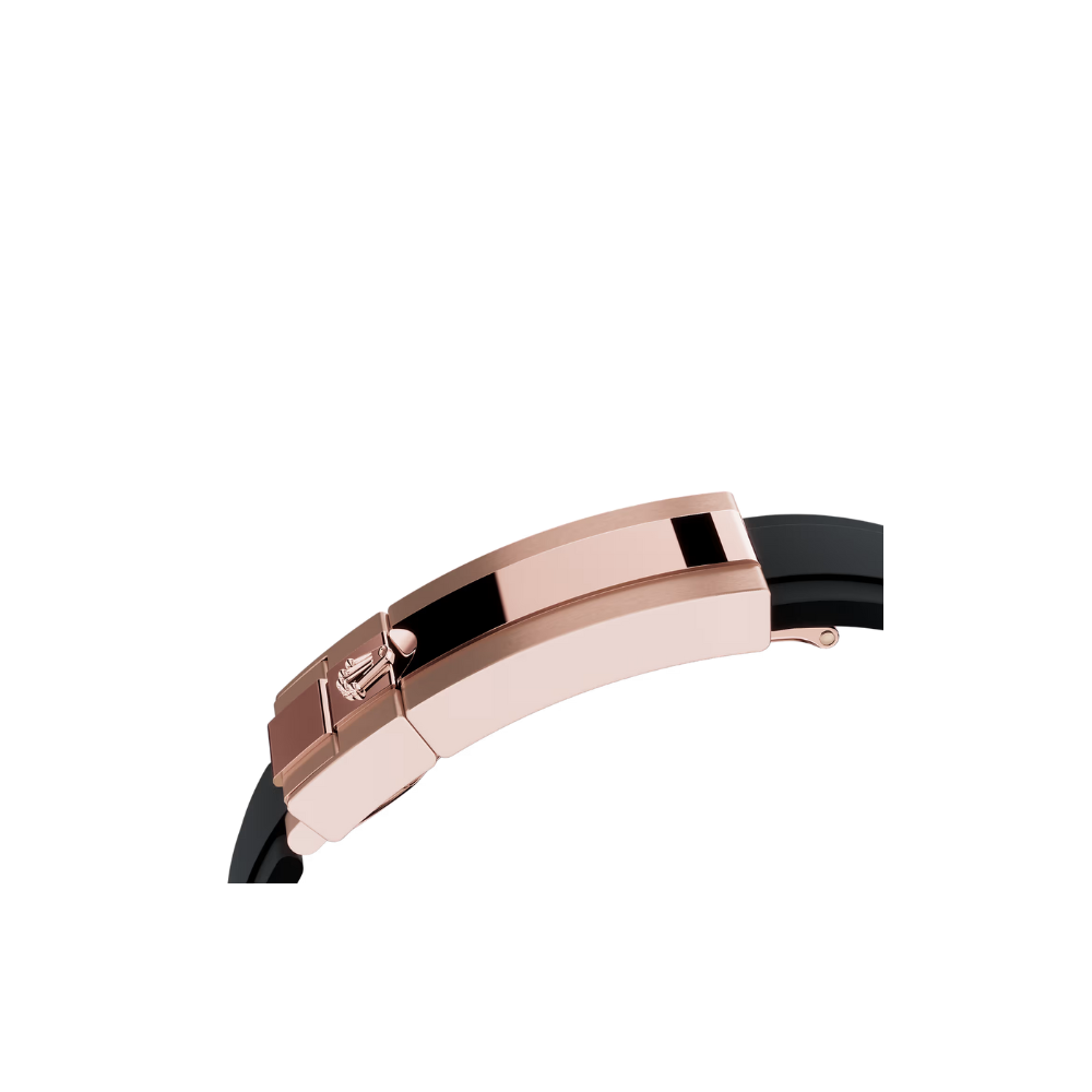 Bracelet Type: Oysterflex elastomer strap over-flexible titanium and nickel alloy blade with an 18 kt Everose gold Oysterlock clasp; features the Rolex patented Glidelock extension system for fine sizing (~15 mm adjustment)